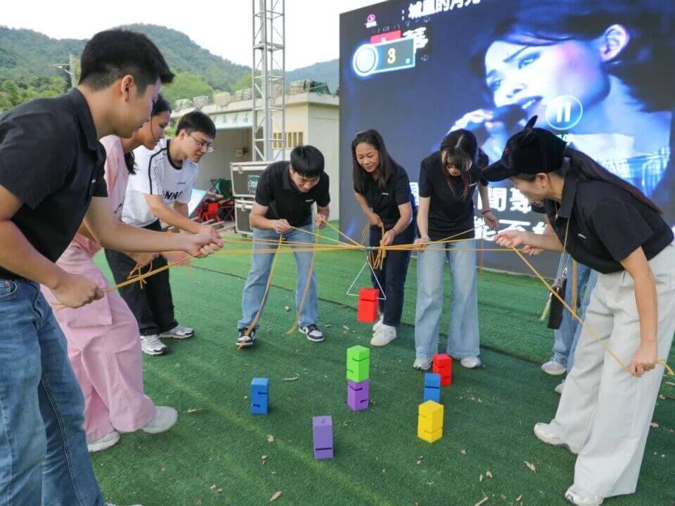 紧接着是齐心垒积木挑战,这无疑是对团队协作能力的极大考验。各小组成员围在一起,小心翼翼地搭建积木,有人负责指挥布局,有人专注拼接,每一步都凝聚着大家的智慧与汗水。过程中虽有失误,但大家相互鼓励、及时调整,最终一座座 “积木高塔” 拔地而起,深刻诠释了 “人心齐,泰山移” 的团队精神。
